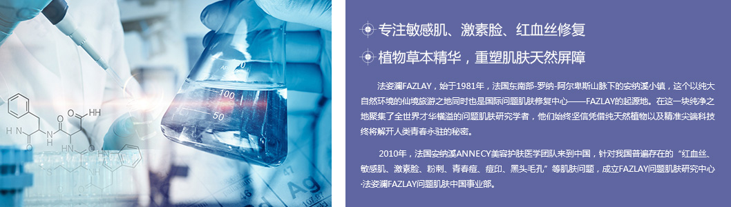• 法姿澜FAZLAY根据多年对中国人群肤质的探索研究,针对层出不穷的各种肤质问题,法姿澜FAZLAY推出“法姿澜·美妍水润系列修复套装”, 旨在安全、高效且针对性解决各类肌肤问题;